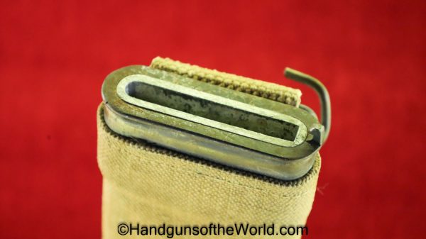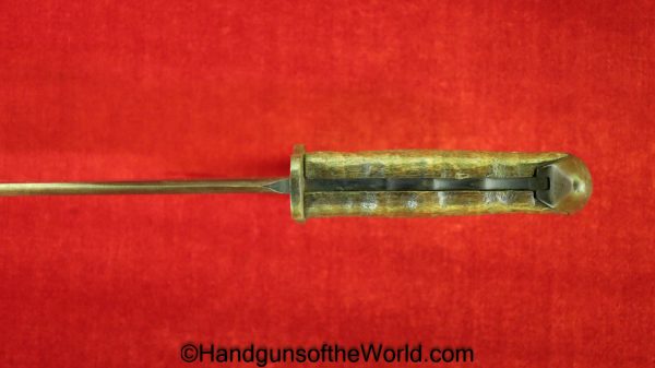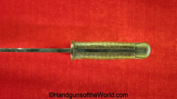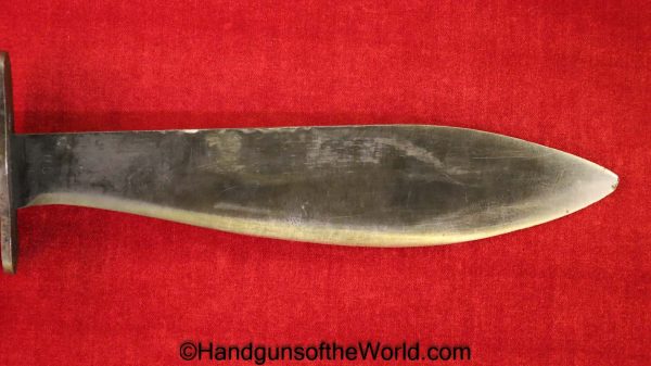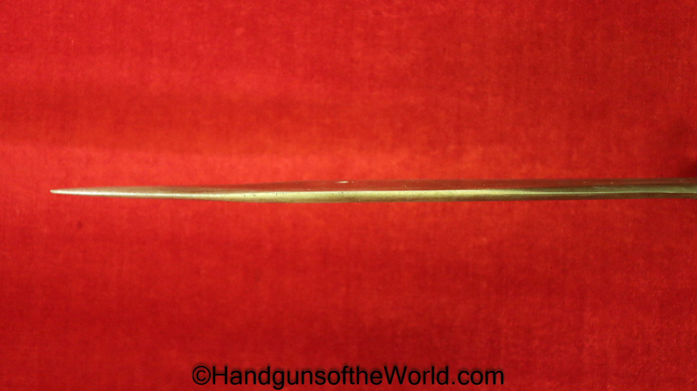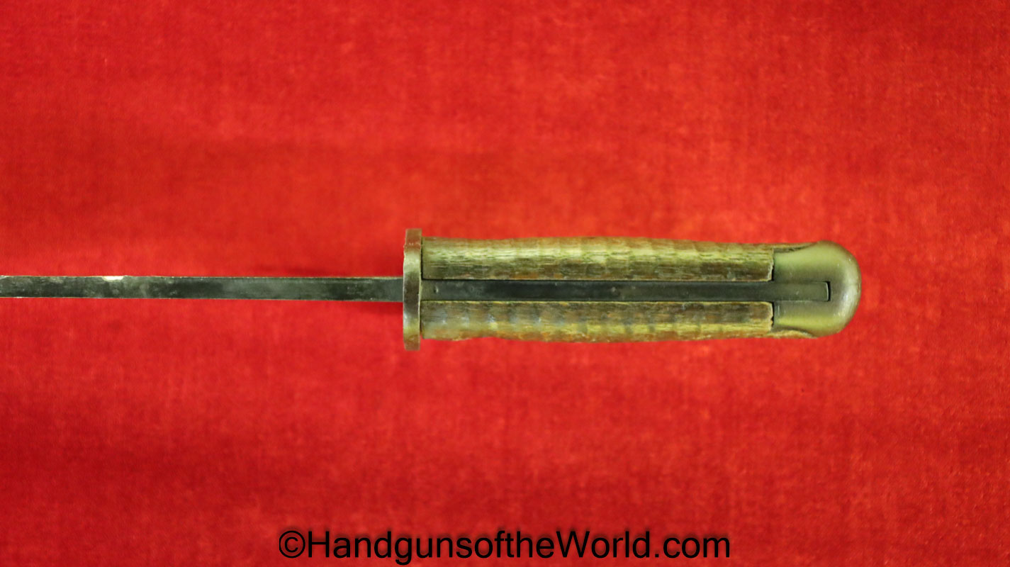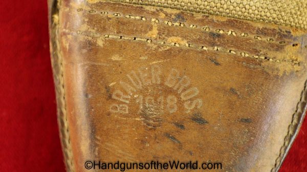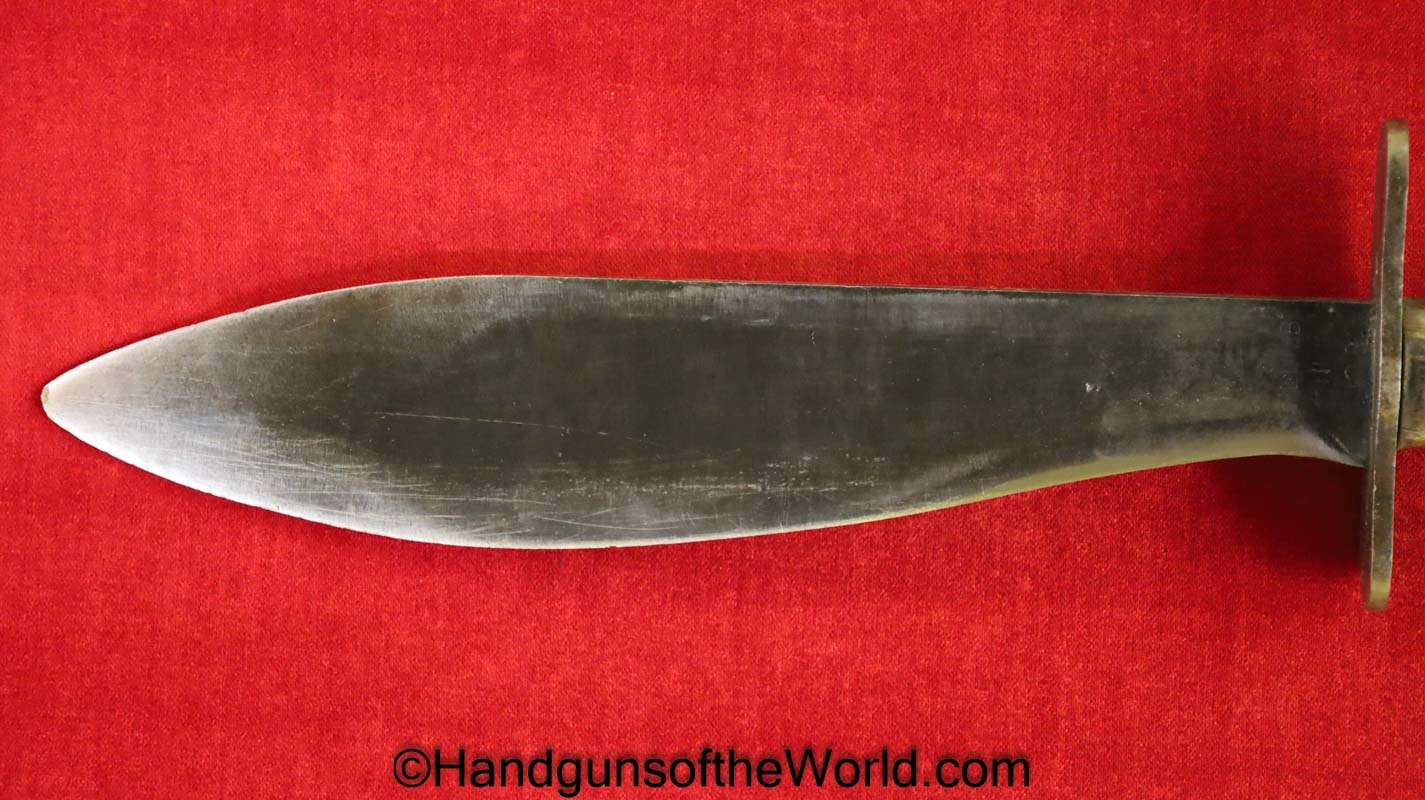Original US Model 1917 Bolo marked Plumb-Phila 1918 on the blade. This has a nice walnut handle and comes with its proper tan canvas covered scabbard marked Brauer Bros-1918. Overall VG+.