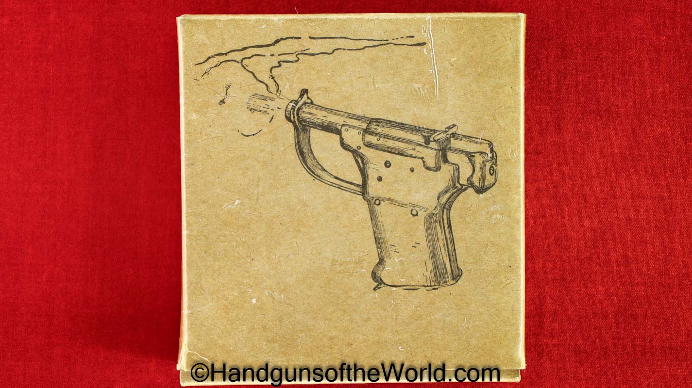 VOCO FP-45=Vintage Ordnance Co Copy of an FP-45 Liberator. This is stamped steel and was made as a non-firing model. Overall, about excellent in the original style waxed cardboard box with all accessories.