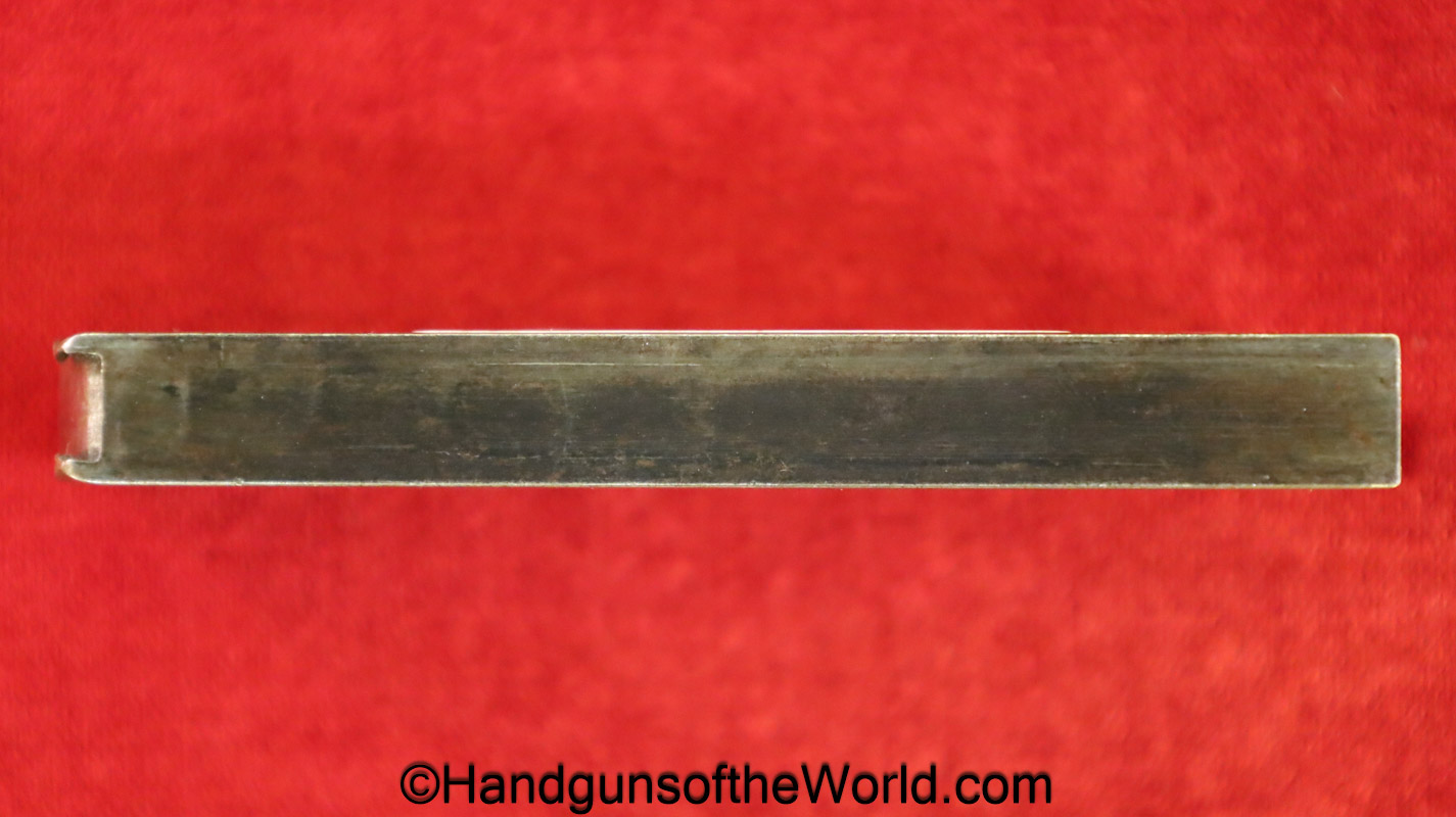 Original Walther Model 4, 7.65mm Pistol Magazine. Unmarked variant. About 90% refinished blue remains.