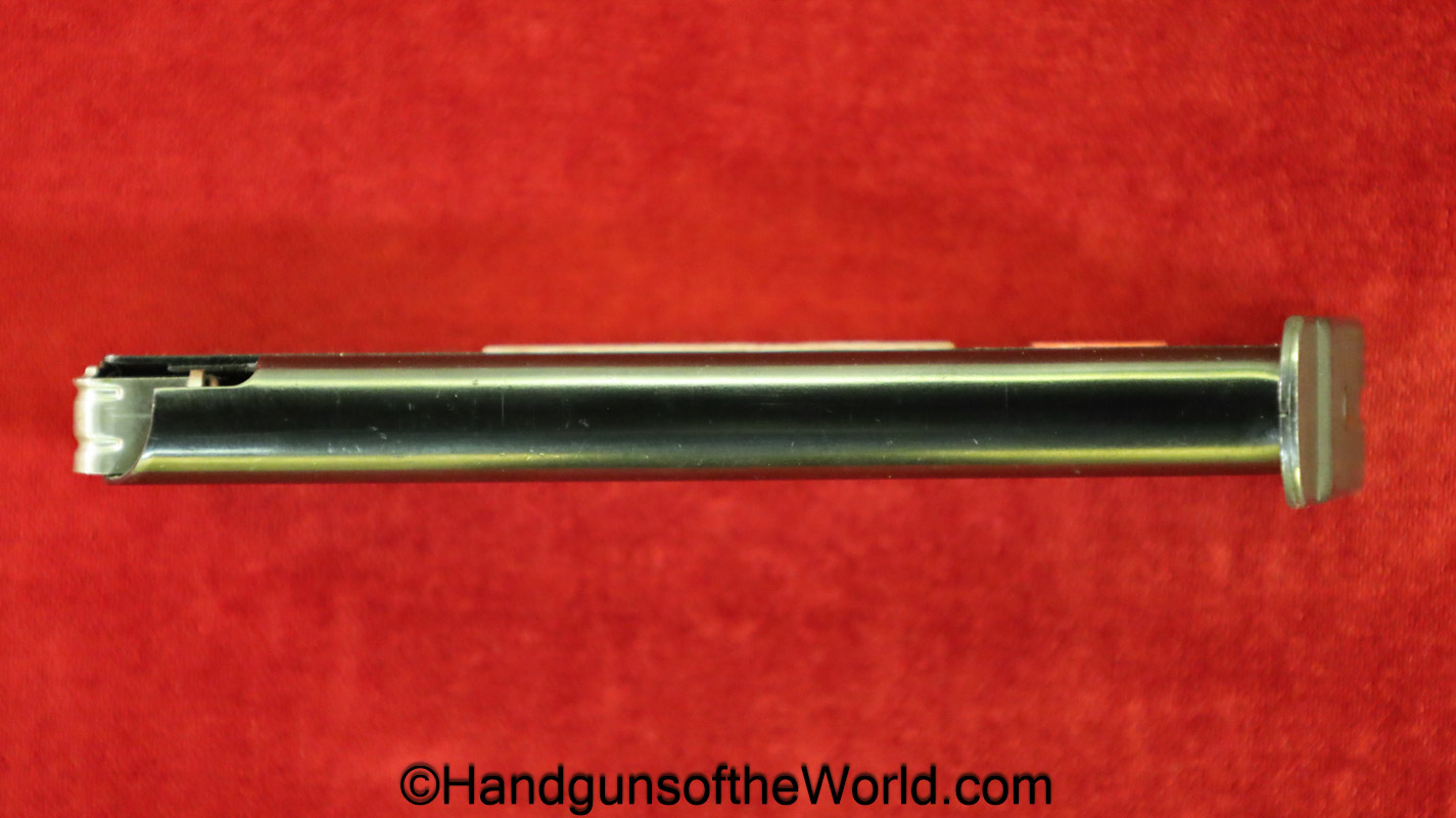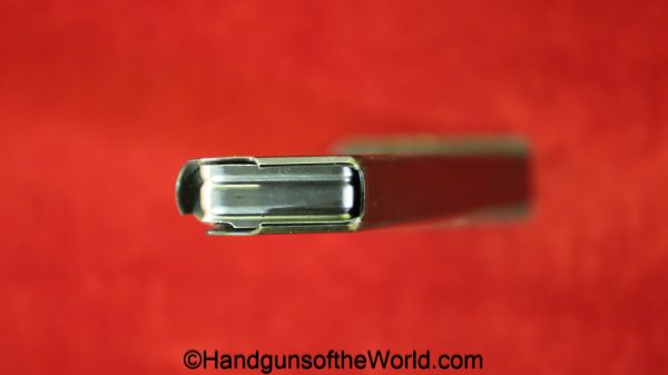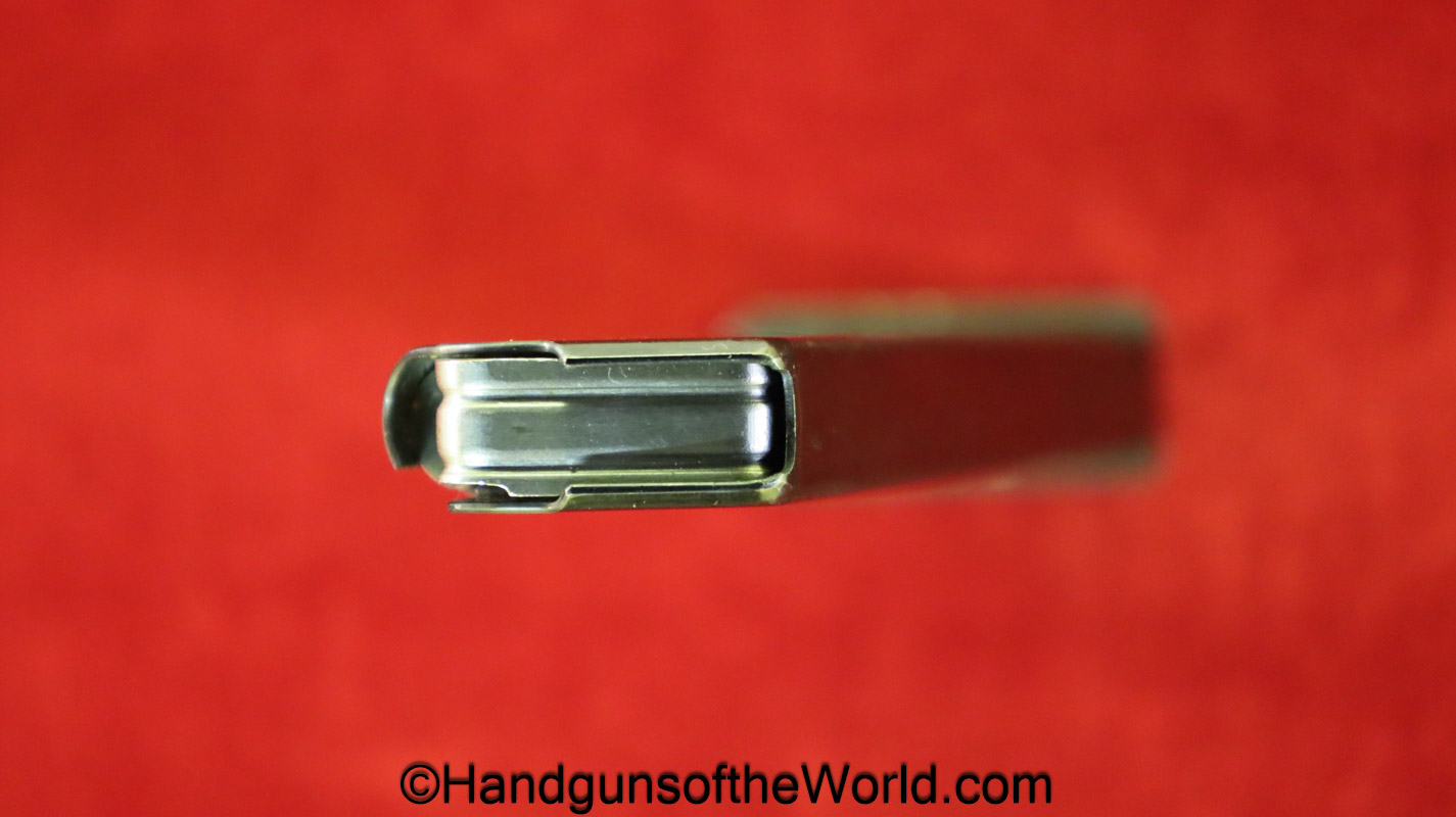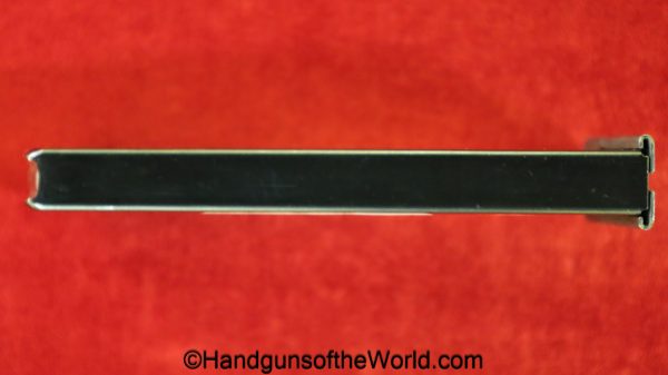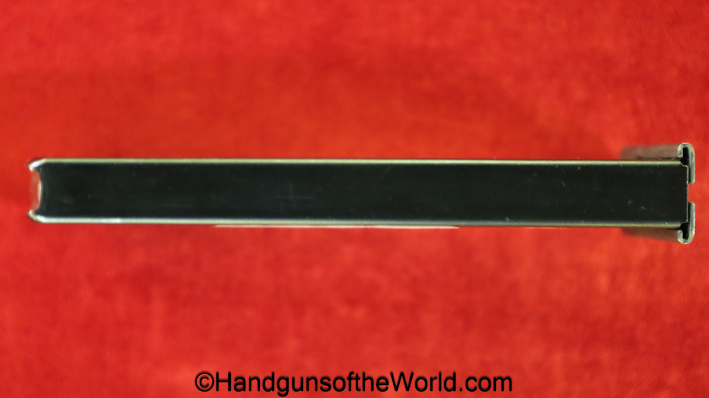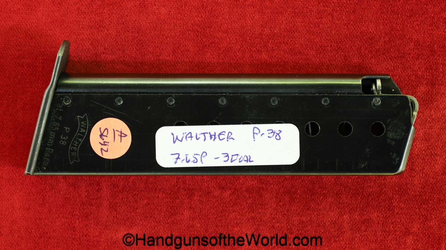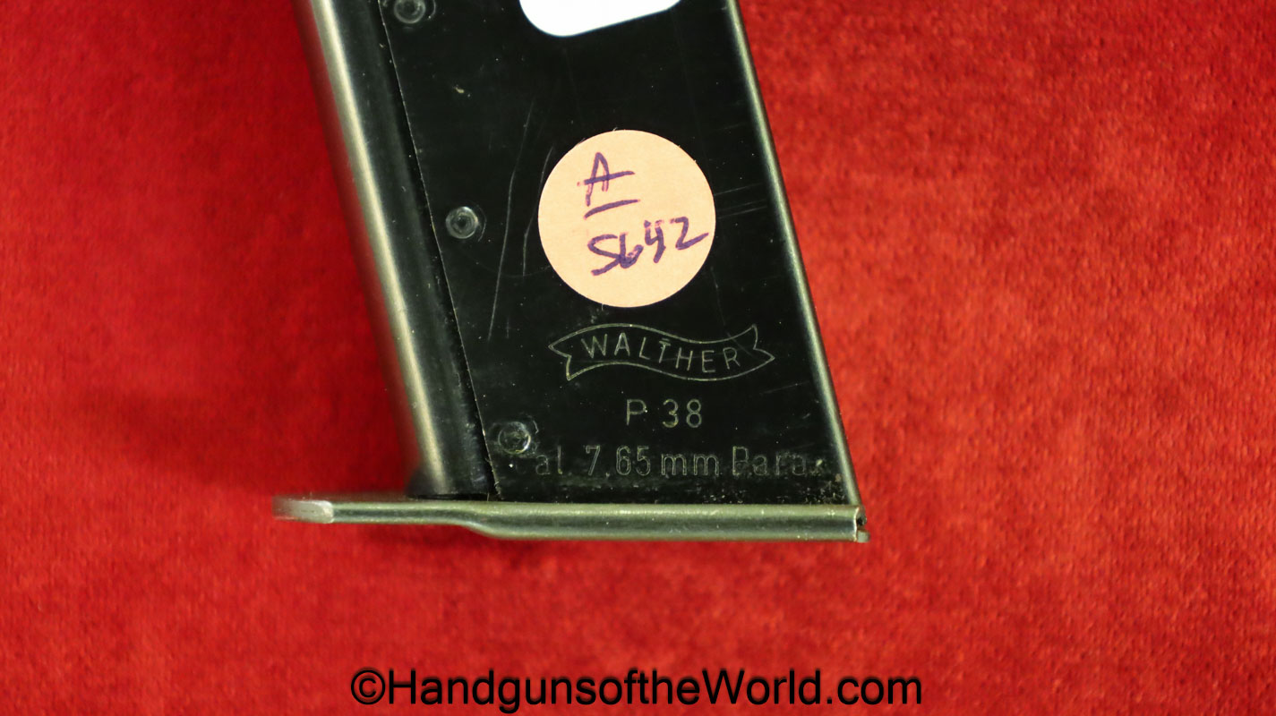 Original Walther P-38 7.65P/.30 Cal pistol Magazine-Clip. This post-war magazine has “P-38 -7.65mm-PARA-Walther Banner” on the side with 98% blue remaining.