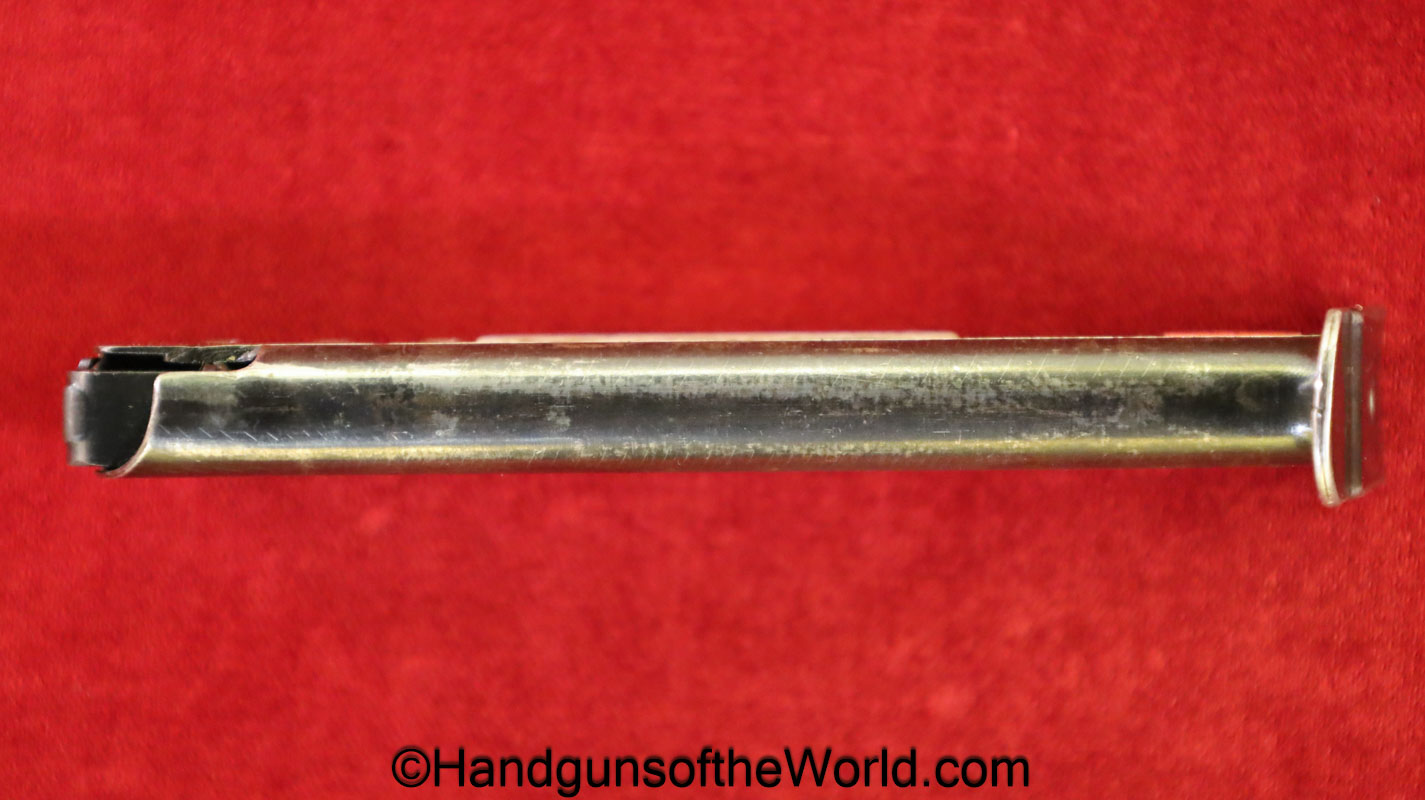Original Walther/Spreewerk P-38, 9mm Pistol Magazine. This has an Eagle 88 proof on the bottom of the spine. The blue rates about 90%. Proper for CYQ marked pistols.