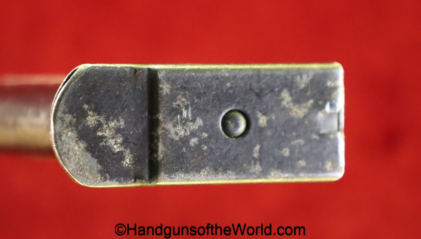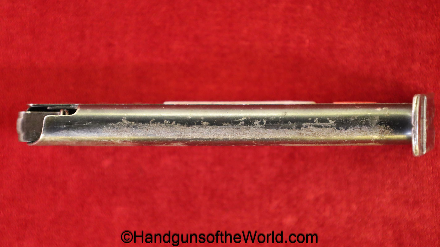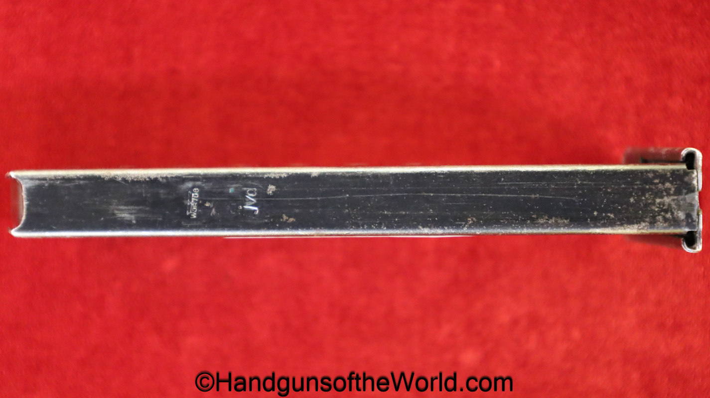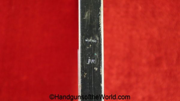 Original Walther P-38, 9mm Pistol Magazine. German WWII marked on the spine “jVD-WaA706.” About 80% blue remains.