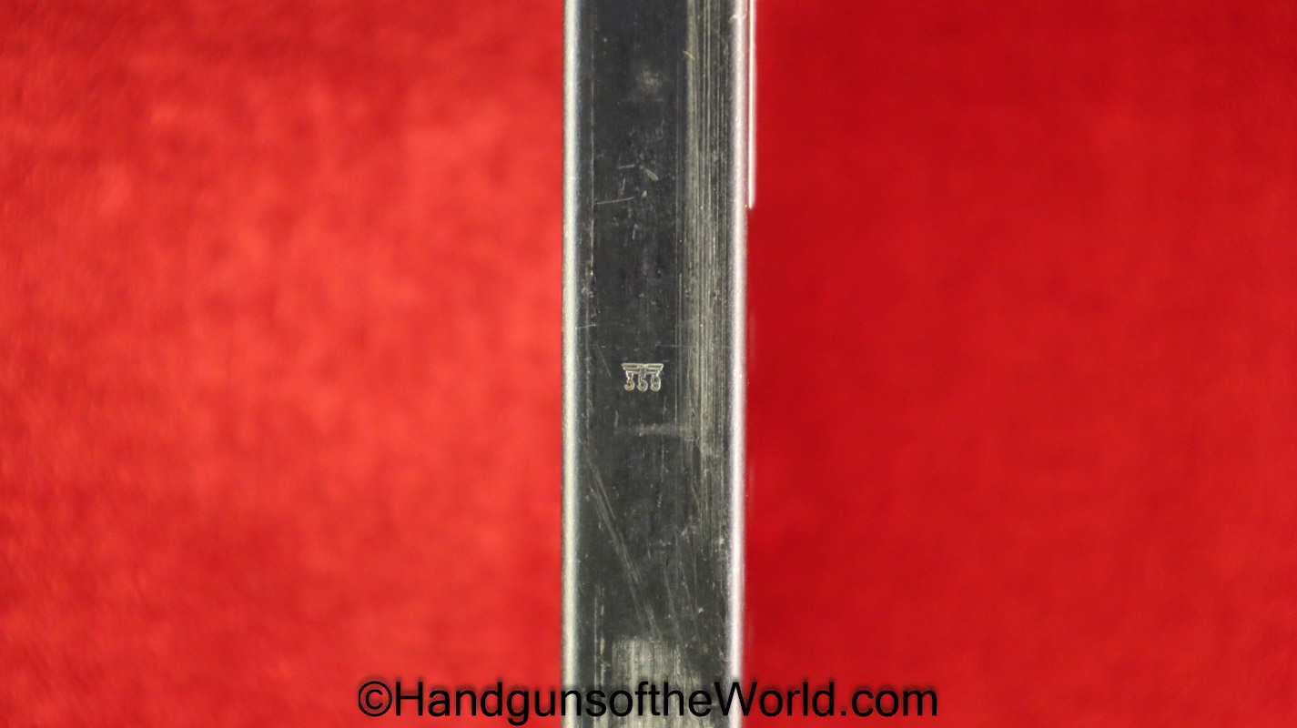 Original Walther P-38, 9mm Pistol Magazine. German WWII Eagle 359 proofed on the spine. About 95% blue remains.