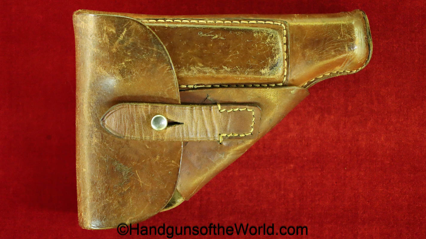Original Walther PP Pistol Holster. This is an unmarked, WWII era constructed from brown leather. Overall VG-VG+.