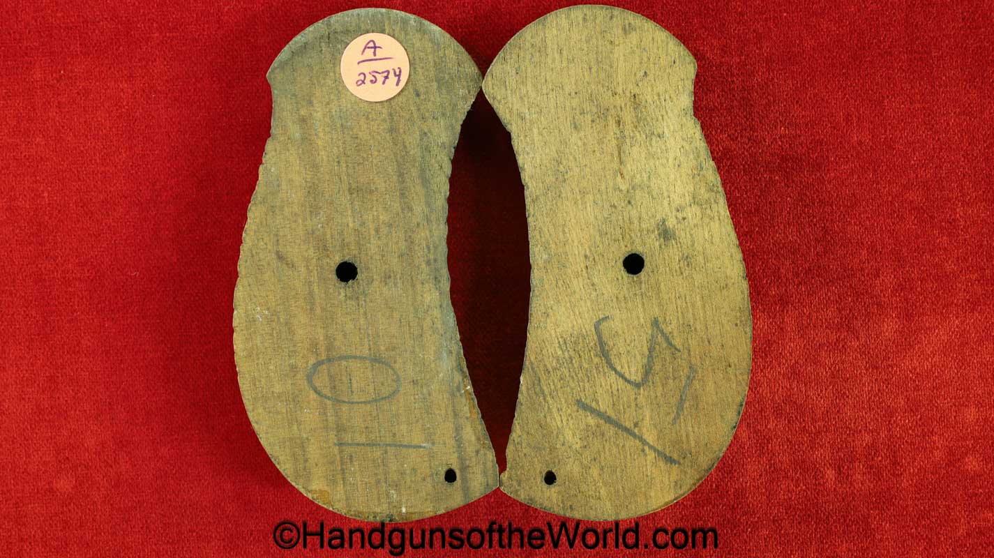 Original Webley Mark I Service Revolver Grips. Checkered walnut. Overall VG+.