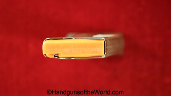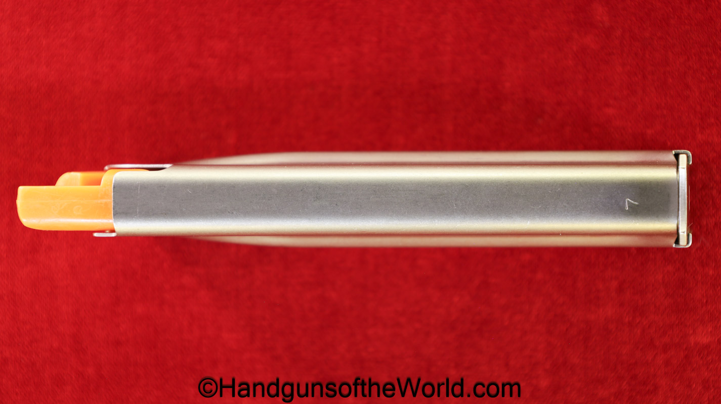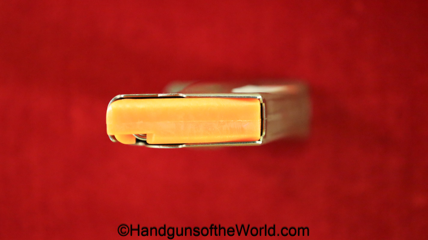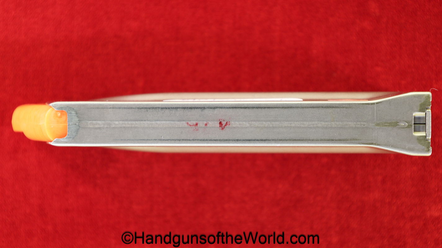 Original Wildey Survivor, .475 Magnum Pistol magazine. This has the orange follower and is marked in red ink 475 on the spine. Overall Excellent.