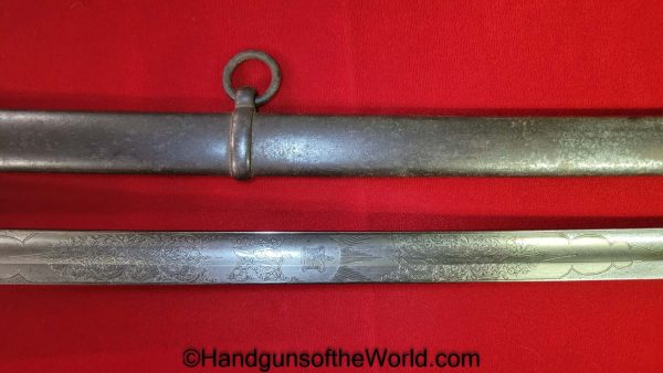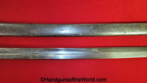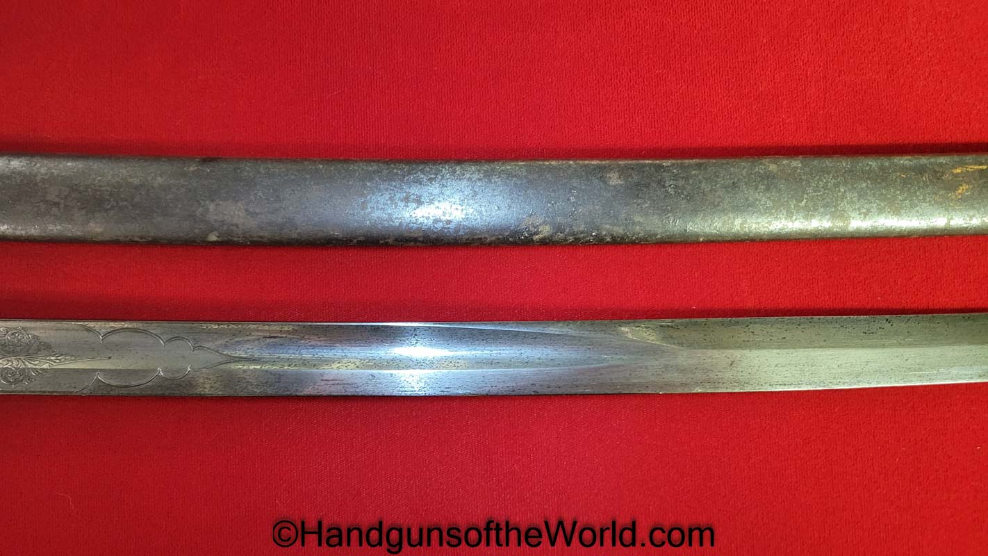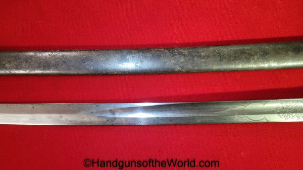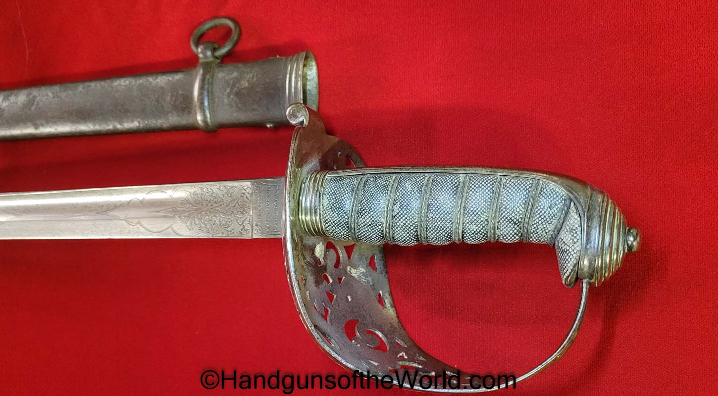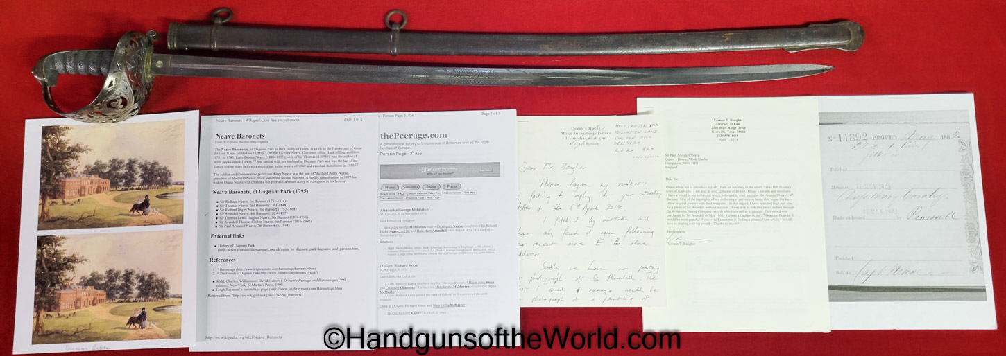 Wilkinson Heavy Calvary Sword, sold in 1862 to Capt Arundell Neaves, Captain of the 3rd Dragoon Guards. This has the Milner Research Letter and a copy of the Wilkinson ledger sheet. This has an engraved blade. Some Military History is included. Overall VG.
