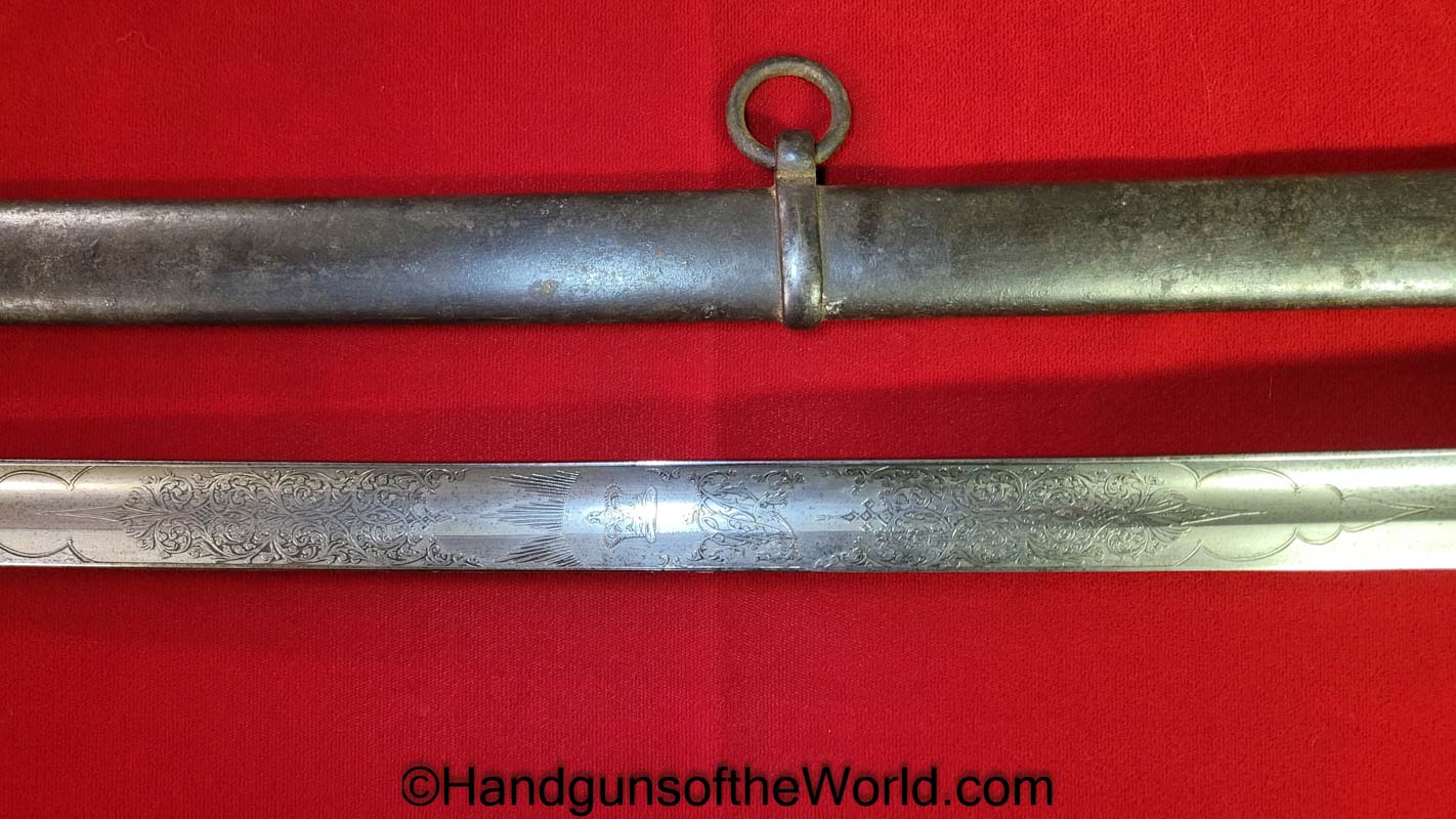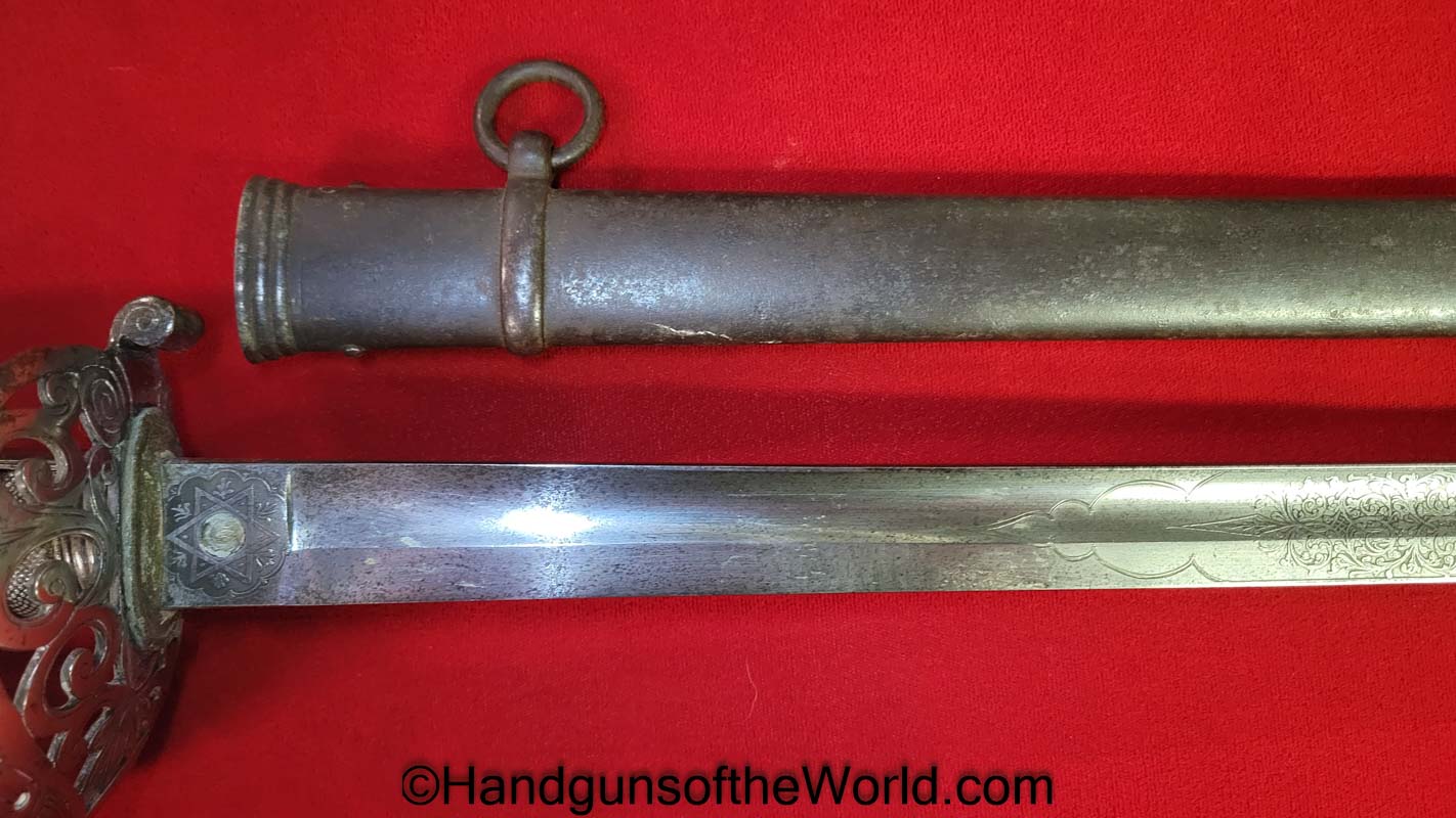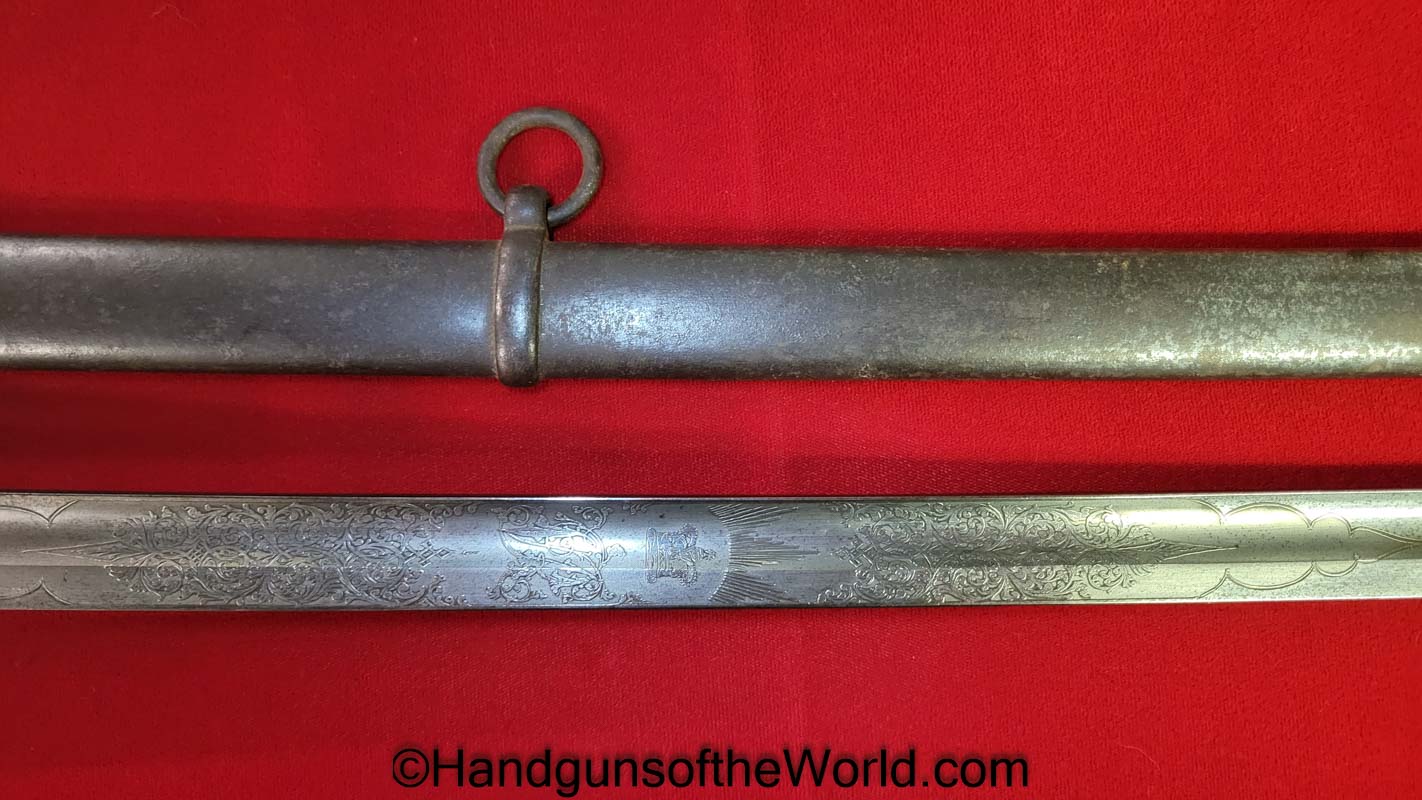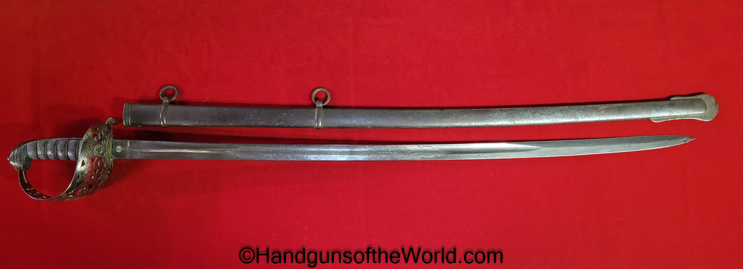 Wilkinson Heavy Calvary Sword, sold in 1862 to Capt Arundell Neaves, Captain of the 3rd Dragoon Guards. This has the Milner Research Letter and a copy of the Wilkinson ledger sheet. This has an engraved blade. Some Military History is included. Overall VG.