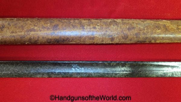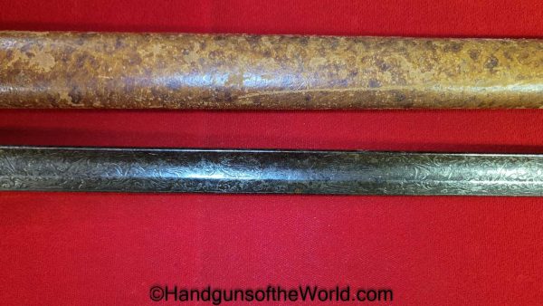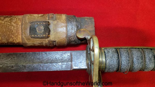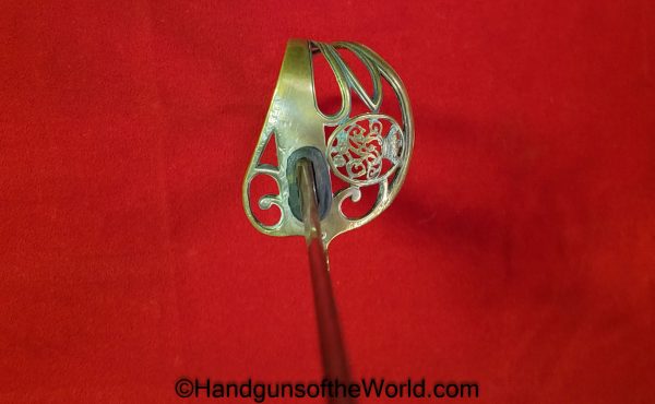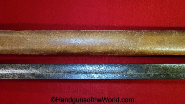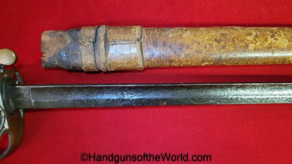Wilkinson Infantry Officers Sword. Sold in 1862 to John James Davidson of the 88th Foot Soldiers division. This has the Connaught Rangers CR logo etched on the blade. This comes with the Milner research letter, some military history, and has been mated to a leather scabbard. Overall G-VG.