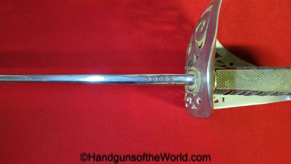 Wilkinson Infantry Sword. Sold in 1897 to William Malebisse Beckwith of the Oxford University Volunteers. This has a nice etched blade and steel scabbard. This comes with the Milner research letter, some Boer war history. Overall VG+.