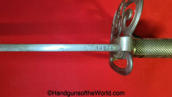 Wilkinson Medium Infantry Sword sold in 1866 to Louis Frederick Knollys with LFK crest on the etched blade. This has the Milner Research Letter and a copy of the Wilkinson ledger sheet. Knollys was the 4th Inspector general of Police in Ceylon=Sri Lanka. He also was Commandant of the Armed Native Constabulary in Figi amongst other titles. Much military history is included along with some photos. Overall VG-VG+.