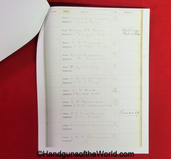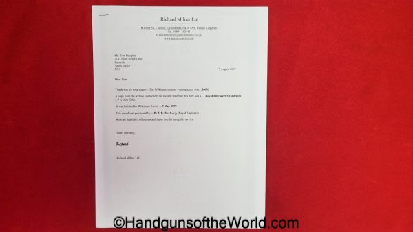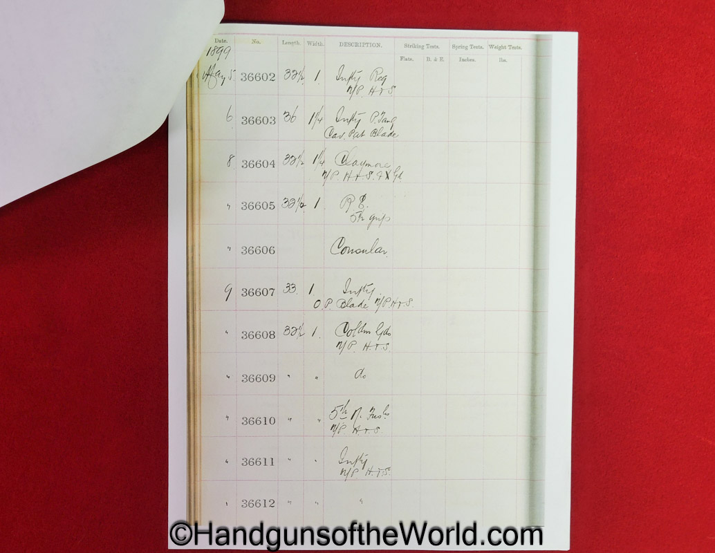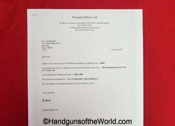 - A copy of the Wilkinson Ledger Sheet verifying the sword’s original sale and serial number entry.