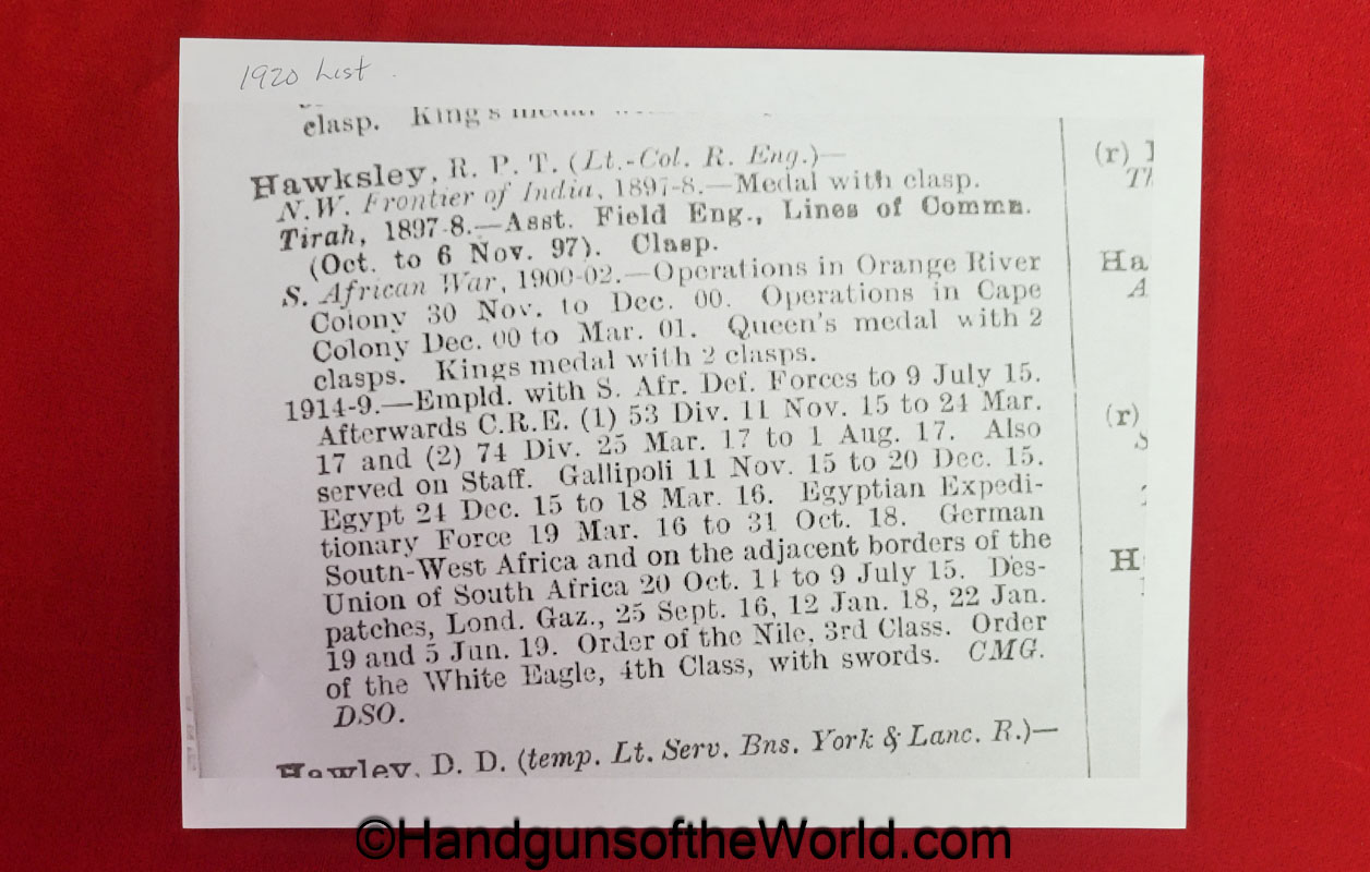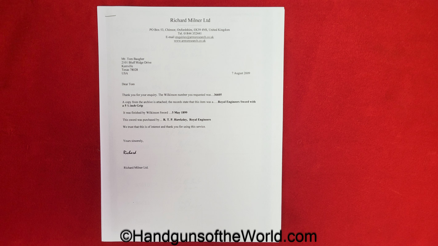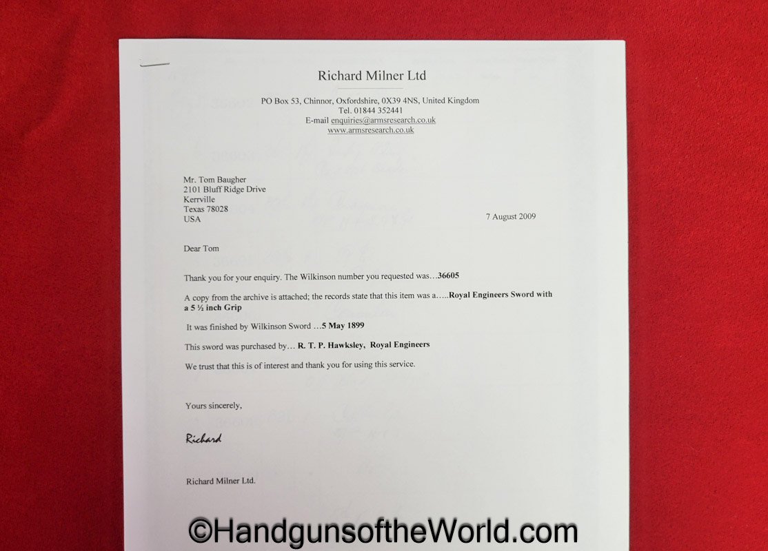 - A detailed Milner Research Letter outlining Hawksley’s military service and the sword’s provenance.